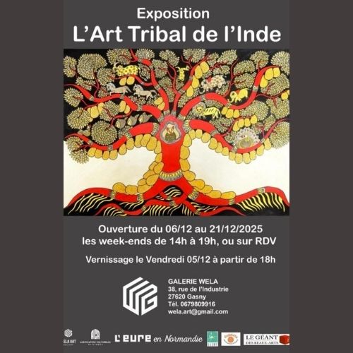 La Galerie Wela présente une exposition exceptionnelle consacrée à l’art tribal et vernaculaire de l’Inde, réunissant 85 œuvres de 35 artistes issus de diverses traditions populaires et animistes. L’événement met en valeur la richesse d’un art profondément ancré dans les mythes, rituels et symboles des communautés rurales indiennes. Autrefois peintes sur les sols ou les murs pour protéger le foyer ou célébrer les moments heureux, ces œuvres sont aujourd’hui transposées sur papier ou toile, tout en conservant leur force spirituelle et narrative. Graphique, mythologique et intimement lié à la nature, cet art offre un regard unique sur l’harmonie entre l’humain, l’environnement et le sacré. Cette exposition a pour ambition de faire découvrir au public français la vitalité des cultures tribales indiennes et de favoriser un dialogue interculturel entre la France et l’Inde. 📍 Lieu : Galerie Wela, 38 rue de l’Industrie, 27620 Gasny (près de Giverny)📅 Dates : 6 → 21 décembre 2025🎉 Vernissage : vendredi 5 décembre à partir de 18h