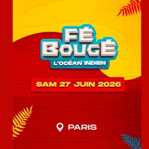 Le rendez-vous incontournable des cultures de l’Océan Indien en France revient ! Le samedi 27 juin 2026, le Dôme de Paris accueillera la 4e édition de Fé Bougé l’Océan Indien pour une soirée exceptionnelle de plus de quatre heures de musique et de spectacle. Des artistes et groupes se succéderont sur scène pour proposer une performance intense, mêlant énergie, émotions et diversité musicale. Séga, maloya, musiques actuelles et influences afro-caribéennes seront au programme. 📅 Samedi 27 juin 2026 📍 Le Dôme de Paris – Palais des Sports34 Bd. Victor, 75015 Paris Information sur : www.febouge.com