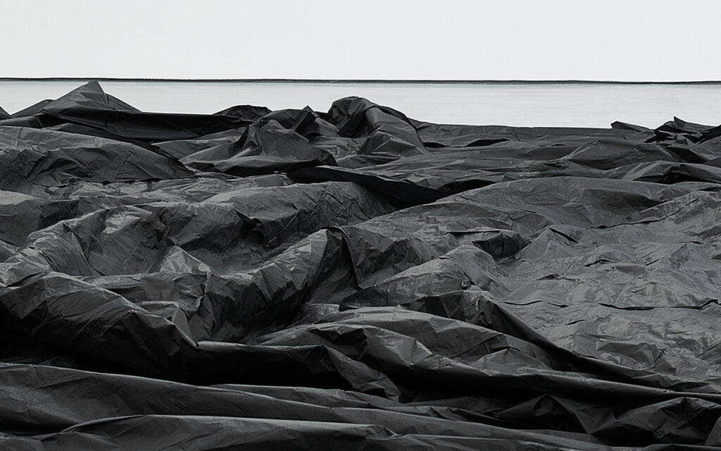 Depuis l’extérieur, le nom inscrit sur la façade s’adresse directement aux passants et ouvre vers un espace où les émotions dirigent tout le processus de création de l’artiste. Déployé comme un élément d’architecture, un papier de soie noir envahit les espaces de Transfo, entraînant le spectateur dans une spirale de surfaces sombres, au fil d’un mouvement fluide, presque organique.