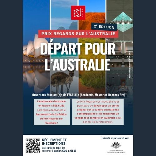 L’Ambassade d’Australie en France est fière d’annoncer le lancement de la 2ᵉ édition du Prix Regards sur l’Australie, en collaboration avec l’ESJ Lille ✍️📰 Ce prix offre à de jeunes journalistes passionné·e·s l’opportunité de mettre en lumière la culture australienne contemporaine à travers leurs travaux, avec à la clé une rencontre avec des professionnels sur le terrain, en Australie 🇦🇺 Un projet soutenu par l’Initiative Culturelle France-Australie.