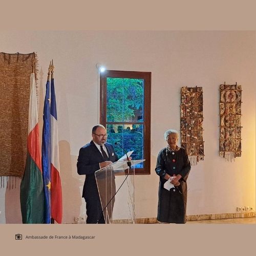 L’écrivaine et journaliste malgache Michèle Rakotoson a été récemment élevée au rang de Chevalier de l’Ordre des Arts et des Lettres par la France, lors d’une cérémonie officielle à la Résidence de France à Madagascar. Cette distinction vient saluer un parcours littéraire remarquable, marqué par plusieurs décennies d’engagement en faveur de la culture, de la francophonie et de la transmission des mémoires malgaches. Figure majeure de la littérature contemporaine, elle a su imposer une œuvre sensible et engagée, explorant les thèmes de l’identité, de l’exil et de l’histoire, tout en contribuant activement à la promotion du livre auprès des jeunes à Madagascar. Lauréate de nombreux prix, dont le Prix Orange du Livre en Afrique pour Ambatomanga, elle poursuit aujourd’hui son travail de passeuse culturelle à travers de nouveaux projets.
